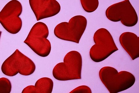 Valentine's day background. Red hearts on pink background.
