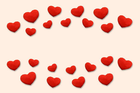 Red hearts confetti on beige background