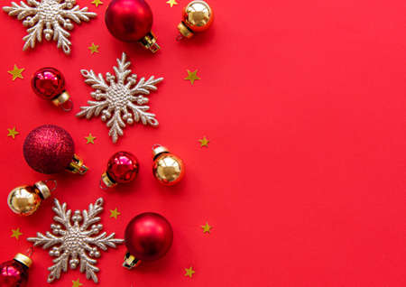 Christmas holidays composition on red background with copy space for your text, Flatlay on red background