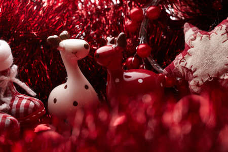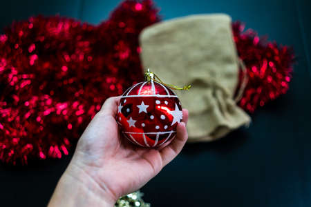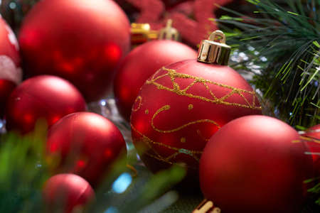 Christmas decoration, Christmas and New Year holidays background, winter season with Christmas ornaments and blurred lights