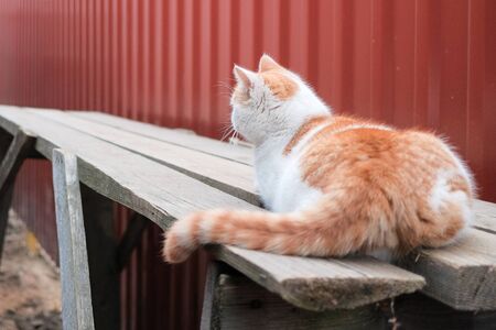 Portrait of a red cat. Red cat on a walk in good warm weather