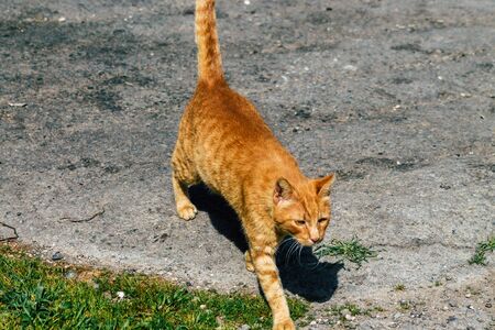 Paphos Cyprus March 10, 2020 View of abandoned domestic cat living in the streets of Paphos