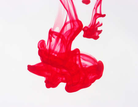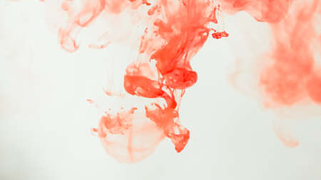 Red ink drop in water on white background. Watercolor paint splash abstract.
