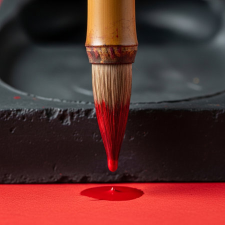 Bright red ink textures with fine lines and bold contrast on a smooth surface