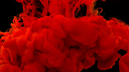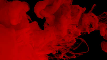 Beautiful wallpaper for your desktop. Red cloud of ink. Awesome abstract background. Drops of red ink in water. Cosmic star background. Blood red watercolor paints in water on a black background.