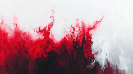 A red and white background with red smoke coming out of it. The smoke is thick and flowing, creating a sense of movement and energy. The red color dominates the , giving it a bold