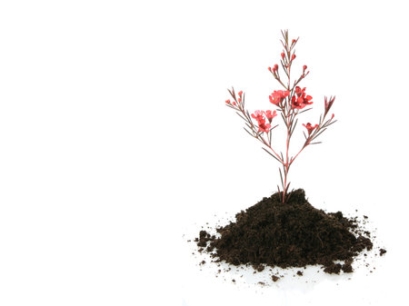red flower bush tree isolated whited background