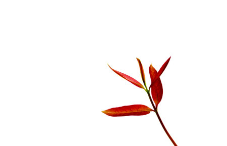 Green leaves and red flower isolates on white background.Copy space ,blank free for text.