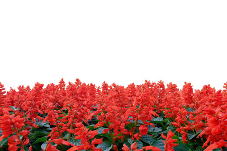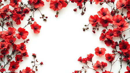Beautiful red flowers frame isolated on white with lots of copy space