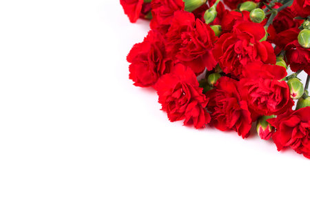 artificial red carnation flower with copy space on white background. ready to add text