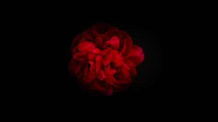 Beautiful red peony blossom (paeonia) on black background