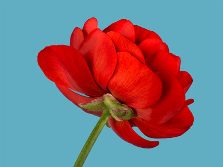 Red flower on a blue background. Close-up.