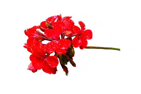 image of indoor flower geranium pelargonium bloomed with red flowers on a white background