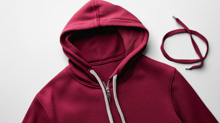 A stylish maroon hoodie featuring drawstrings, perfect for casual wear or layering in winter. Showcases modern fashion and comfort on a clean background.
