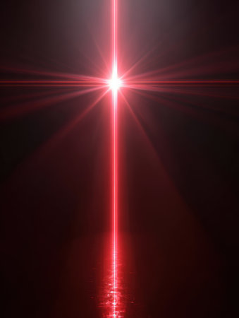 A vibrant red light beam radiates from the center against a dark background, creating an abstract and mesmerizing visual effect perfect for creative projects.