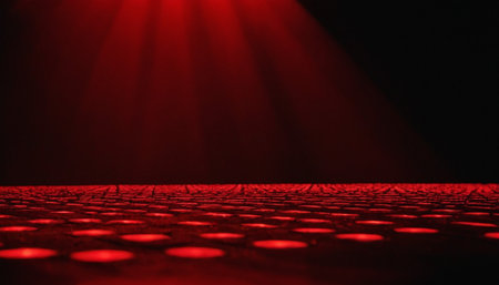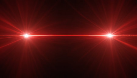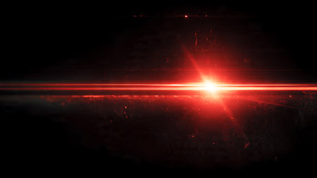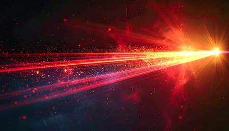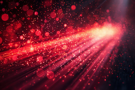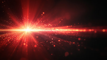 AI Generated. Red Laser Beam and Light Particles on Black Background