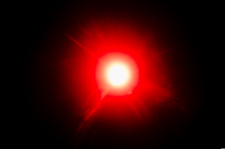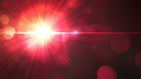 Red lens light effect, flash and burst of light. Magic star rays and effect.