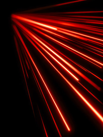 Experience the vibrant energy of abstract red light streaks that create a sense of motion and innovation, ideal for digital art and technology themes.