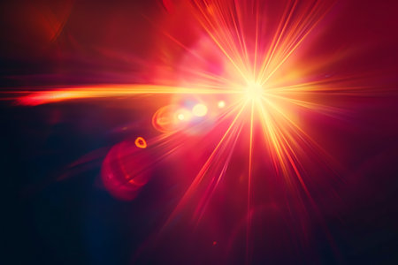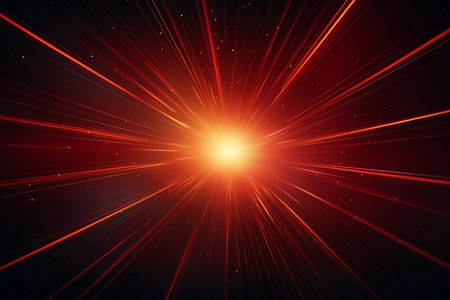 This image features a bright red light explosion radiating dynamic rays, perfect for creating vibrant backgrounds or adding energy to modern design projects.