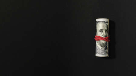 top view bank notes with rubber band copy space. High quality beautiful photo concept