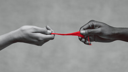 Connected hands creating red string relationship