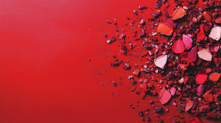 This vibrant image showcases an artistic arrangement of red makeup elements on a striking red background, perfect for fashion or beauty themes.