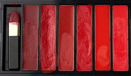 From light to deep color lipstick texture. Isolated on white. Copy space.