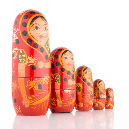 Russian dolls in front of white background
