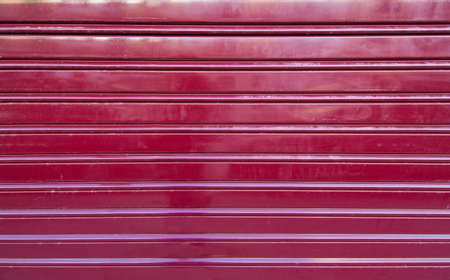 Texture of red metallic rolling shutter door of garage, warehouse, shopping mall store etc