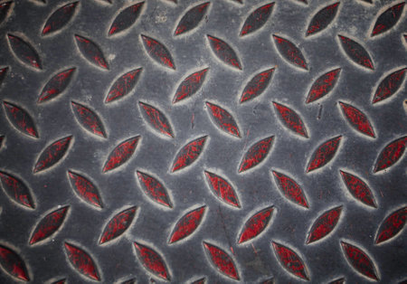 Grunge red metal diamond plate floor texture and background.