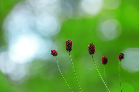 Sangvisorba flower on green bokeh background. macro plant close-up.