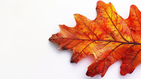 Aesthetic oak leaf with vibrant autumn colors, copy space, white background, presentation template. Generative AI.