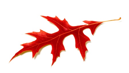 Red leaf of oak on white background Close-up view