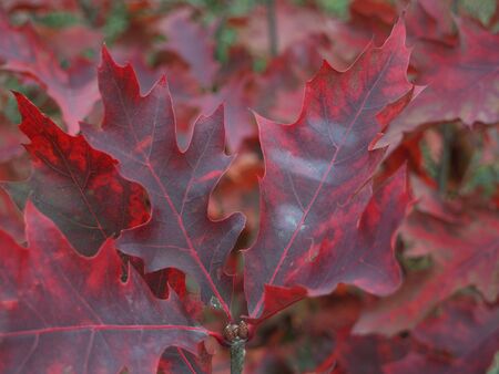 purple oak tree leaves at autumn