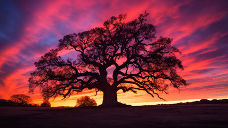 sunsilhouette old oak tree