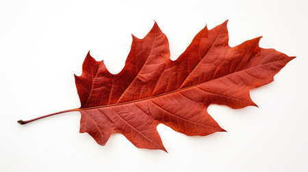 A beautifully rendered illustration of a red oak leaf, exhibiting detailed veins and a vivid hue,