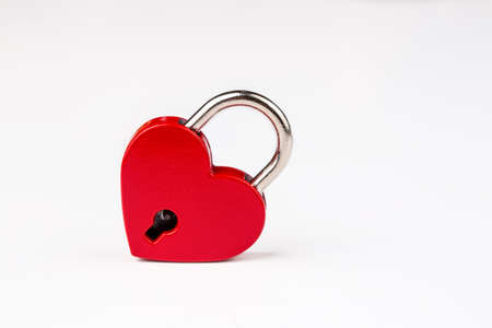 Red padlock in the shape of a heart on a white background