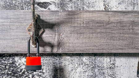 Red padlock on broken poor gate