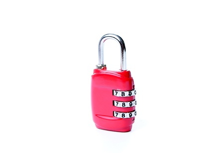 Little red combination padlock, isolated on white background