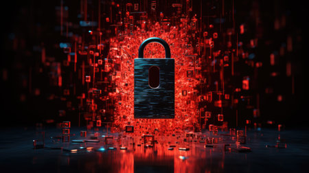 AI Generated. Red digital padlock protecting data in cyberspace with copy space
