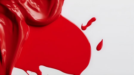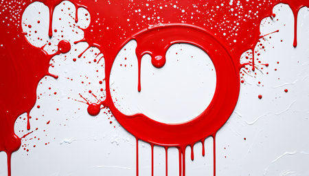 A vibrant display of bright red paint drips and splatters across a clean white surface illustrates the essence of abstract art. The dynamic movement of the paint suggests a spontaneous artistic process highlighting the interplay of color and texture