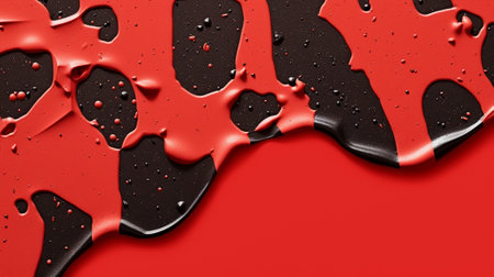 Red paint flows on a black background. Copy space.