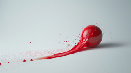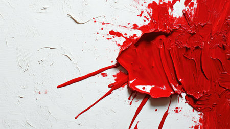 Vibrant splash of red paint creates eye catching focal point against textured white background, evoking sense of energy and creativity. dynamic drips and splatters enhance artistic expression