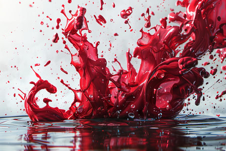vibrant red liquid splashes out of a bowl, creating a dynamic and captivating scene.