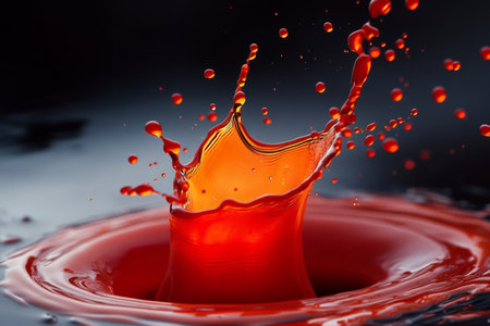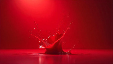 Dynamic red liquid splash against solid backdrop for striking visual
