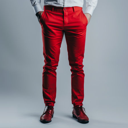 Man in Red Pants, White Trousers and Shoes Mockup, Fashion Model, Red Pants Generative AI Illustration