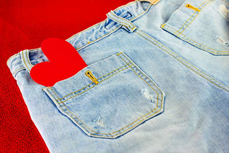 red heart shape in pocket blue jeans