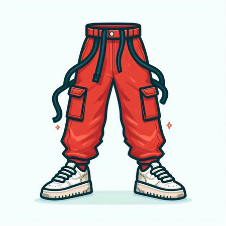 Cartoon vector illustration of a man wearing red pants and sneakers.