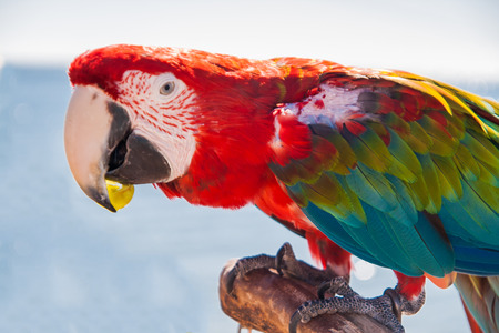 Ara Macao. exotic bird parrot with red feathers.