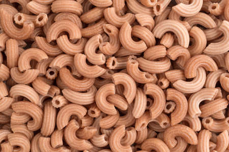 Uncooked pasta on neutral background. Meal based on flour. Italian healthy food.